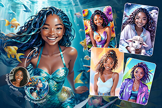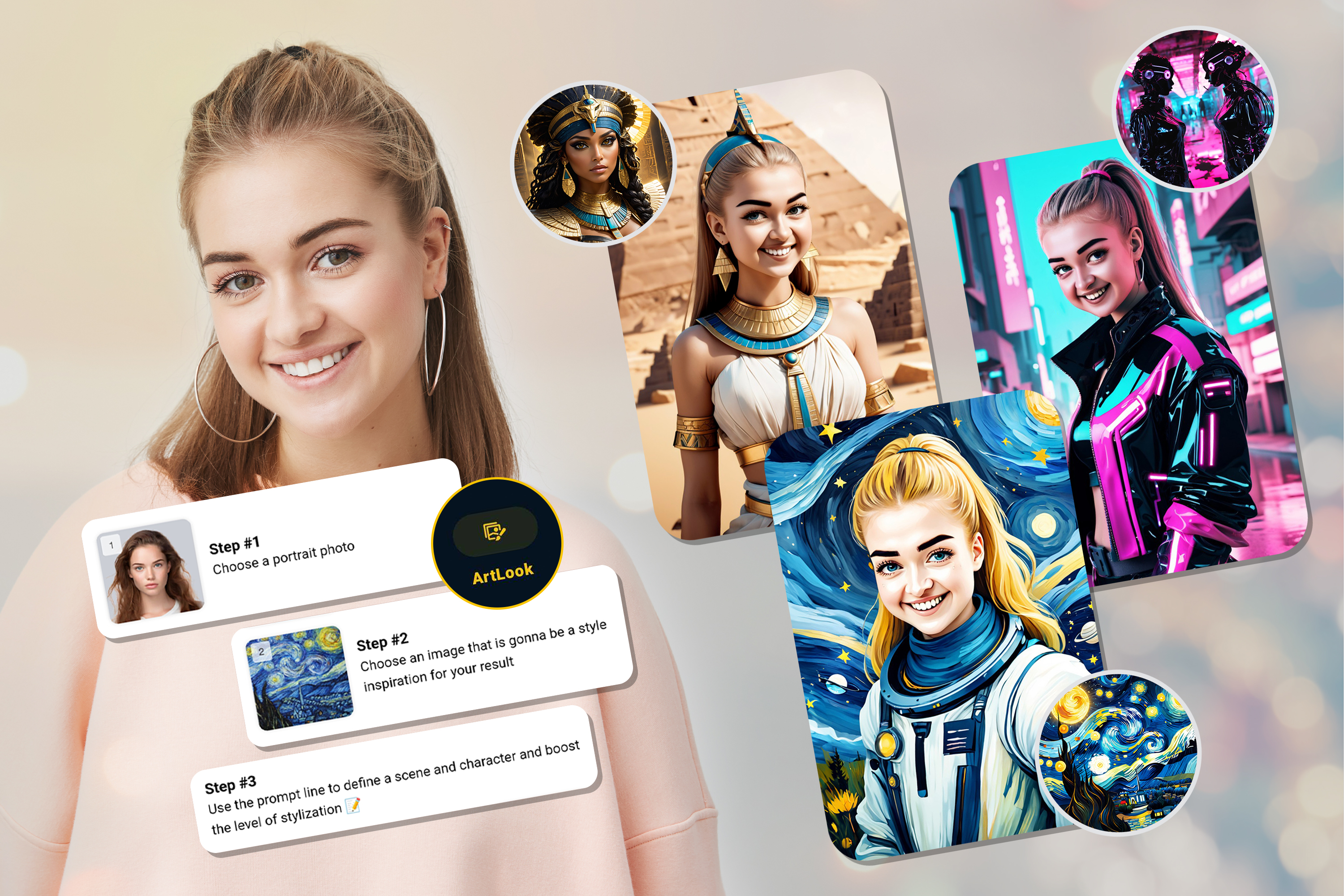 This artistic baby uses a mix of technologies called generative AI and style transfer. It takes the visual style from one image and blends it with portraits, creating completely new and unique pieces of art. Supports user-generated content via custom text prompts and uploaded images for style transfer. Who knew tech could be this artsy?