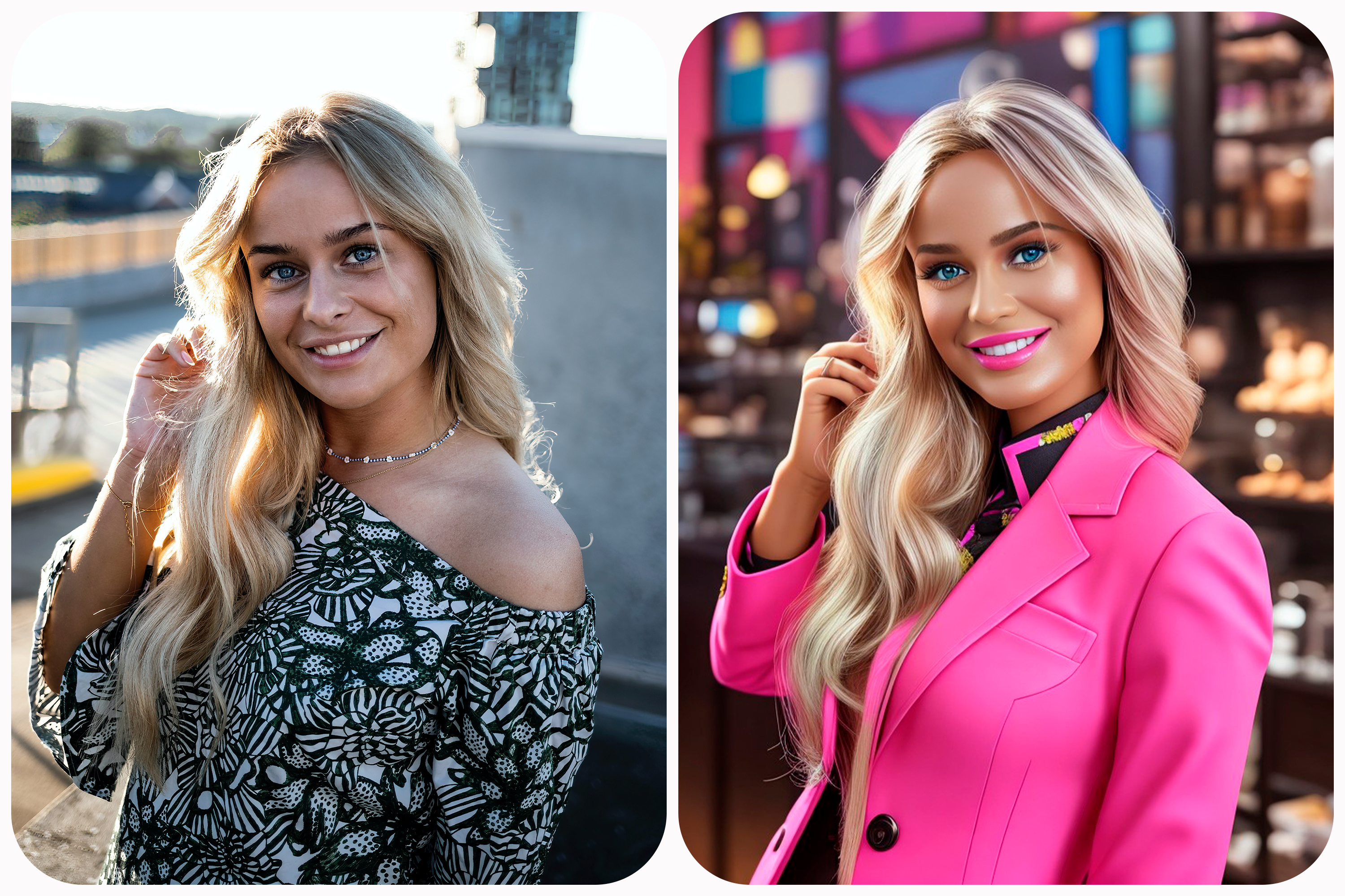 The Barbify feature uses AI-driven filters to turn images into their cute, doll-like versions, creating a whimsical world of adorable perfection.